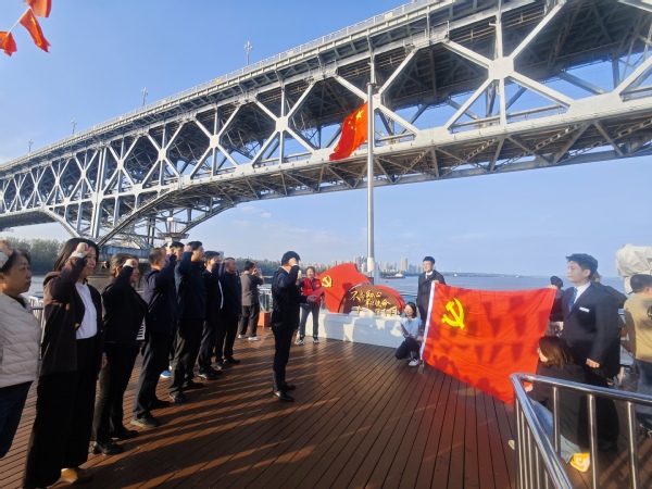 活动伊始,在宋雅兵同志的带领下,全体党员面向党旗庄严站立,高举右拳重温入党誓词。铿锵有力的誓言回荡在长江岸边,不仅强化了党员同志的身份意识与责任意识,更凝聚起以党建为引领、服务发展大局的思想共识,为此次主题党日活动奠定了坚实的思想基础。